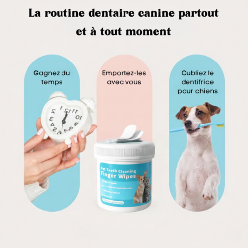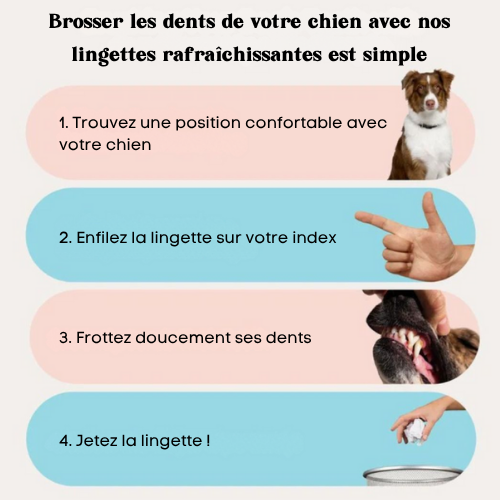 Brosser les dents de mon chien a toujours été un calvaire parce qu’il était terrifié. Mais ces lingettes ont tout changé. Il n’a plus du tout peur et me laisse lui nettoyer les dents sans aucun problème. Ça a vraiment amélioré notre routine de soin dentaire.