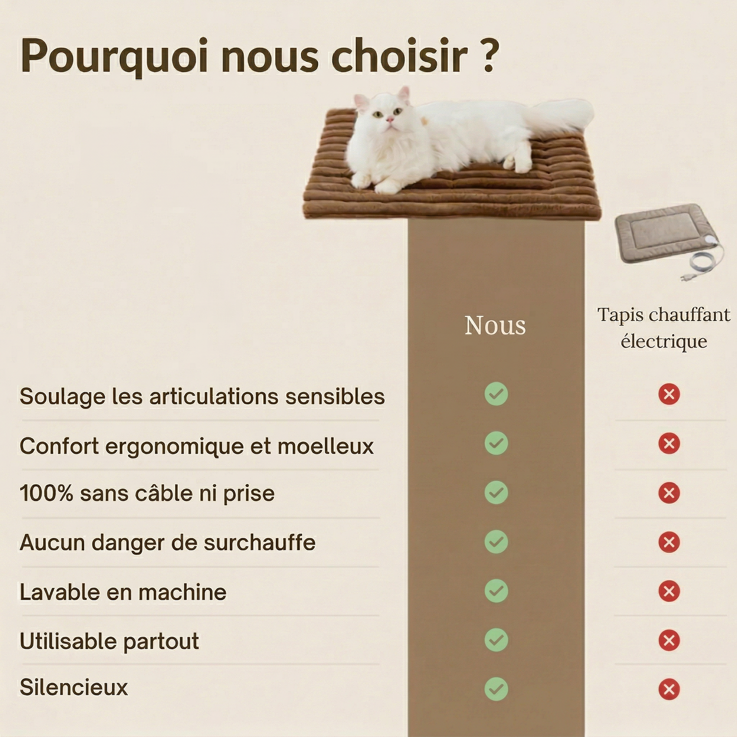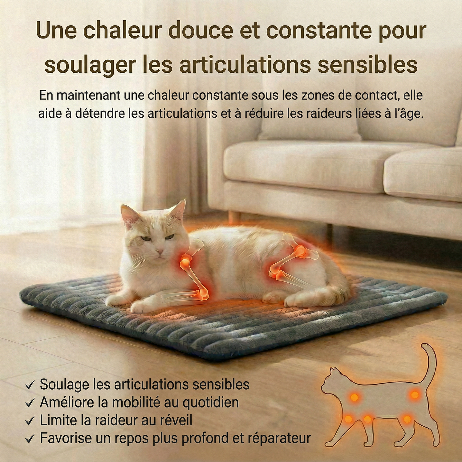 C'est d'ailleurs pourquoi de nombreux vétérinaires recommandent une source de chaleur douce pour les animaux seniors ou sensibles aux articulations.