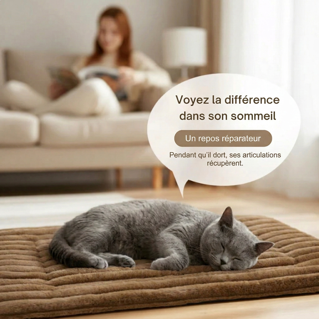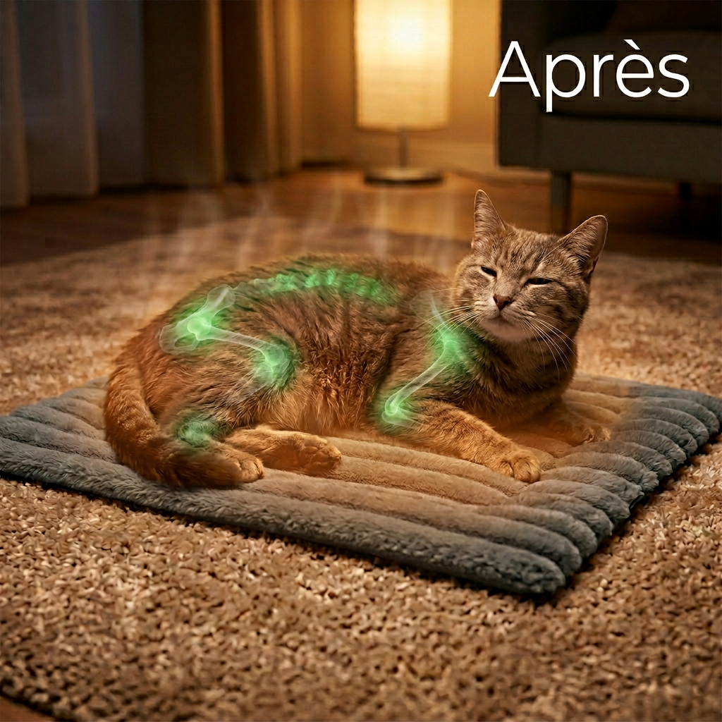 En conservant la chaleur corporelle sous votre chat, le tapis crée une zone chaude et apaisante, idéale pour le repos. Utilisé jour après jour, ce confort thermique aide votre chat à mieux récupérer, à se sentir plus à l'aise au quotidien et à retrouver une meilleure mobilité.