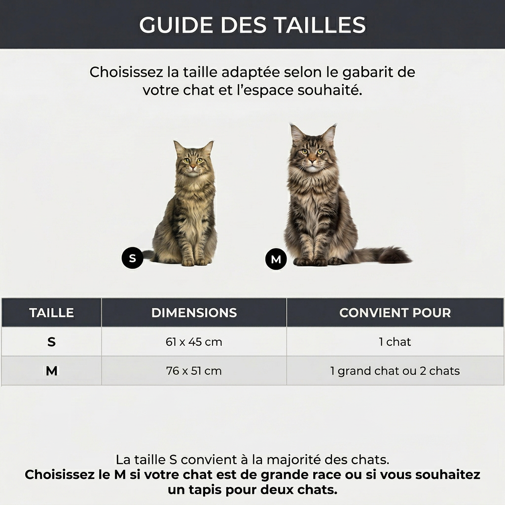 Choisissez la taille qui correspond au plus grand, ou optez pour un tapis par chat.